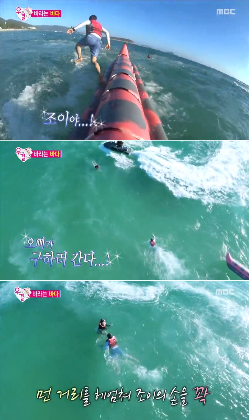 육성재가 바다에 빠진 조이를 구하려 물 속으로 뛰어들었다.