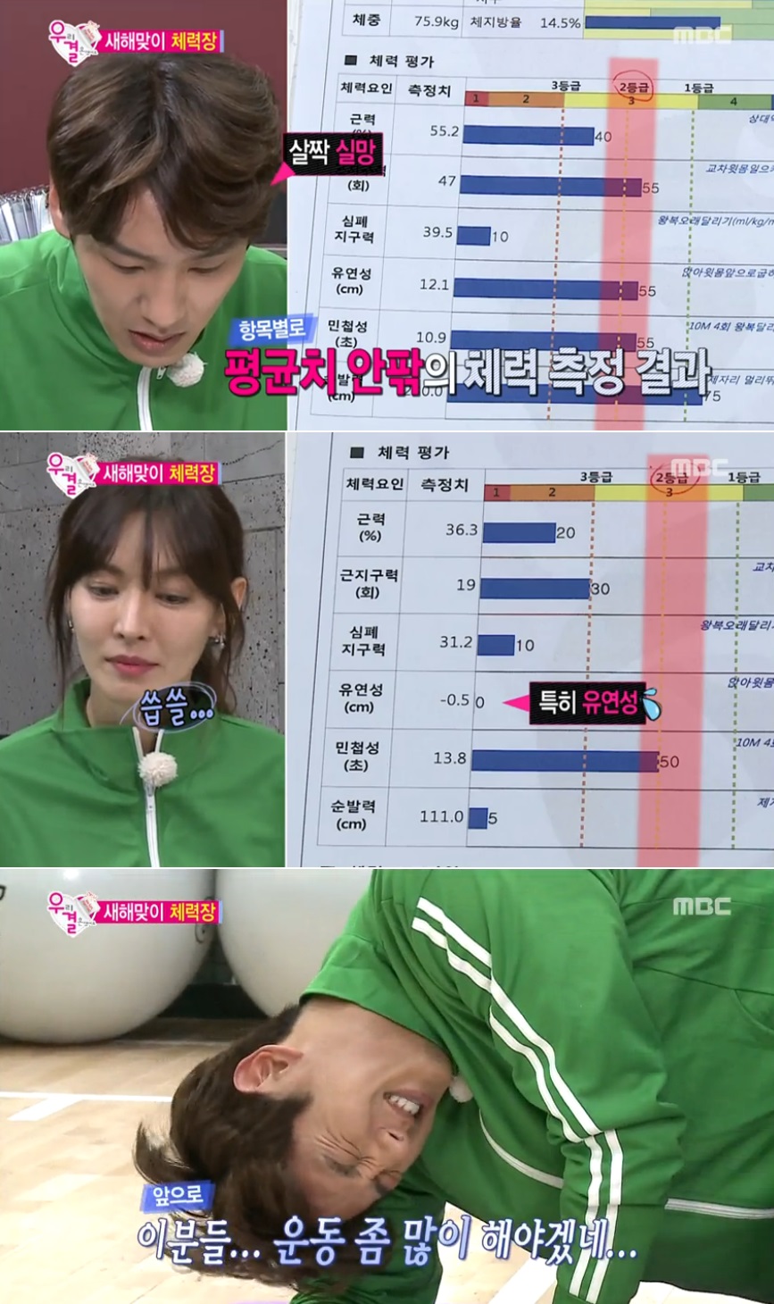 이어진 윗몸 일으키기와 순발력 테스트에서도 허당기 가득한 모습을 선보이며 평균이하의 체력을 보였다.