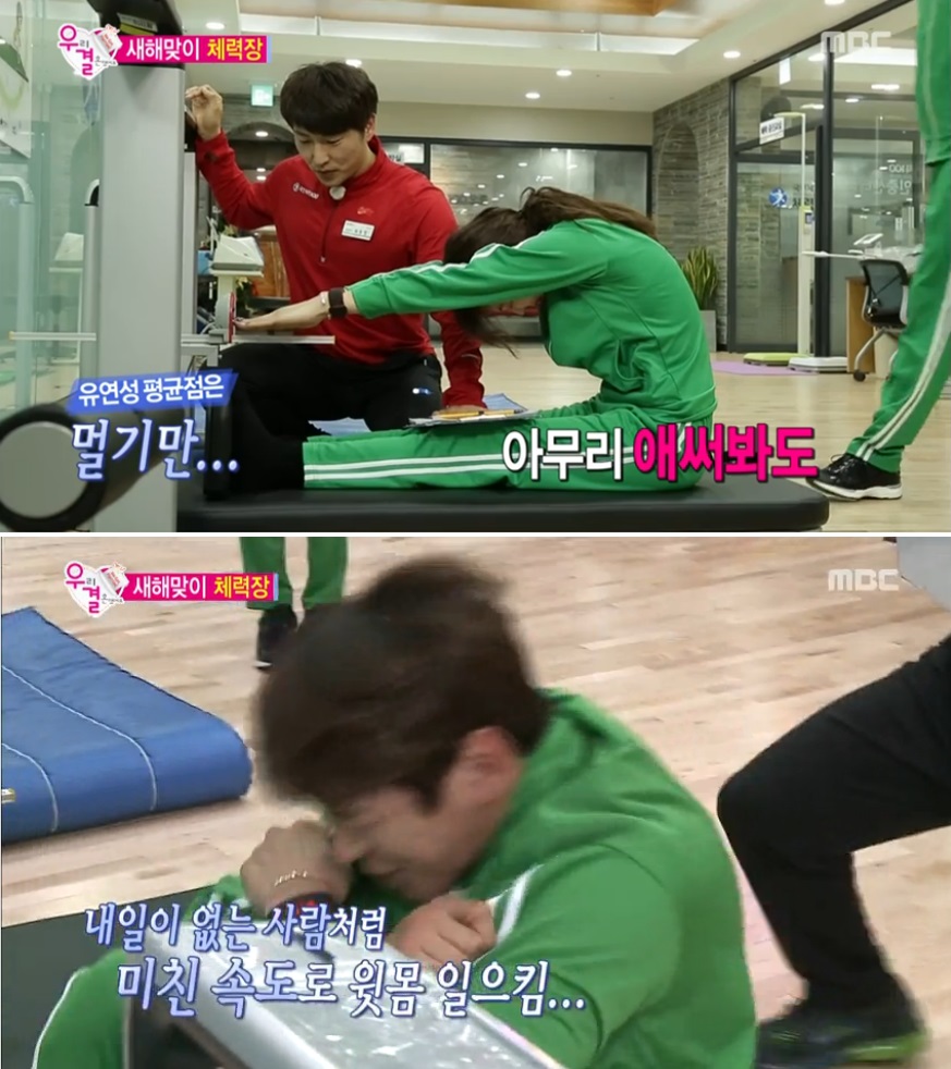 이미 자타공인 저질체력에 유연성 제로로 알려진 김소연은 ‘유연성 테스트’에서부터 불안감을 드러냈다. 김소연은 비명까지 내지르며 애썼지만 평균에도 못 미치는 유연성을 보였다.