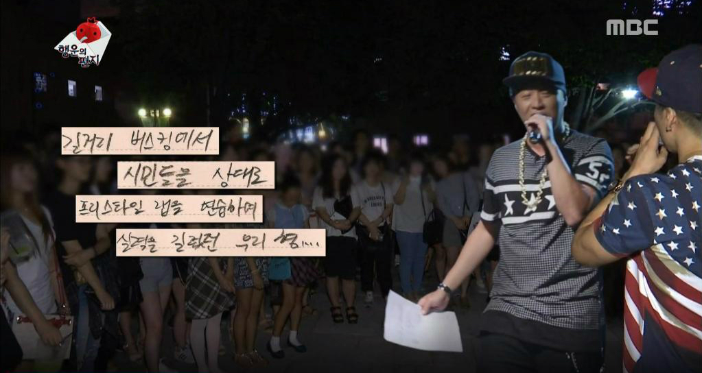 이어 "길거리 버스킹에서 시민들을 상대로 실력을 키웠던 형. 앞으로 멋진 래퍼가 되길 바란다"며 편지를 마쳤다. 이에 유재석도 "와. 형, 쇼미더머니 나가느냐"며 쇄기를 박아 정준하를 당황케 했다.