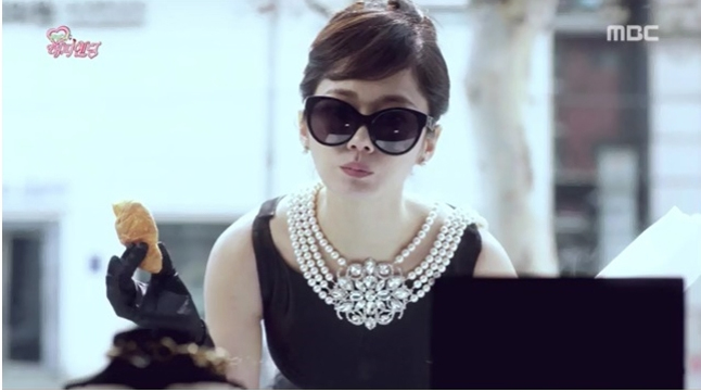 또한 영화 <티파니에서 아침을>을 패러디한 장면도 있었다. 배경음악 ‘문 리버’가 흐르는 가운데 ‘오드리 헵번’같은 모습으로 등장한 미모(장나라)가 반지를 고르다 자신의 손에 끼워져 있는 유치찬란한 반지를 보고 놀라는 모습이 큰 웃음을 줬다.