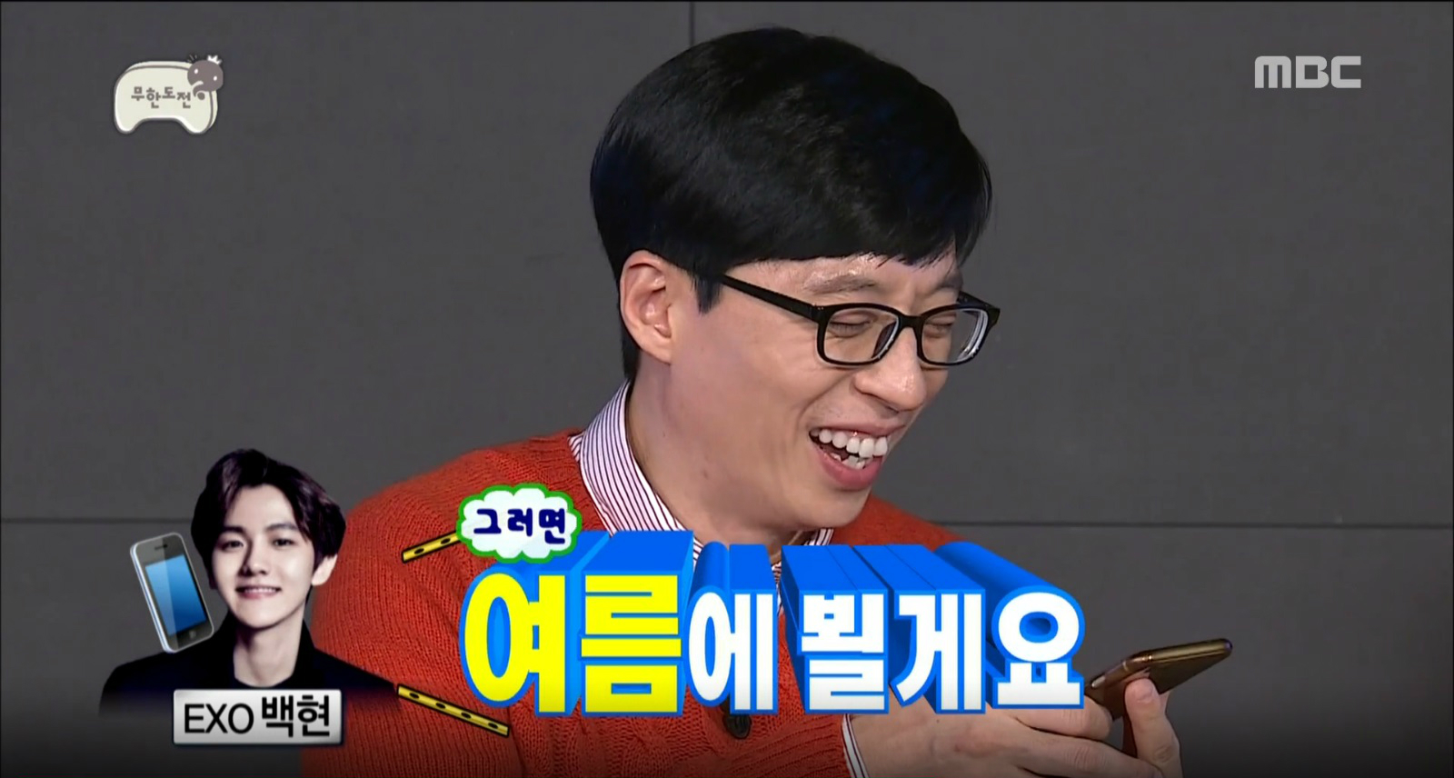6일 방송된 MBC 예능 프로그램 <무한도전>에서는 유재석과 엑소의 합동 공연이 성사되는 모습이 그려졌다.