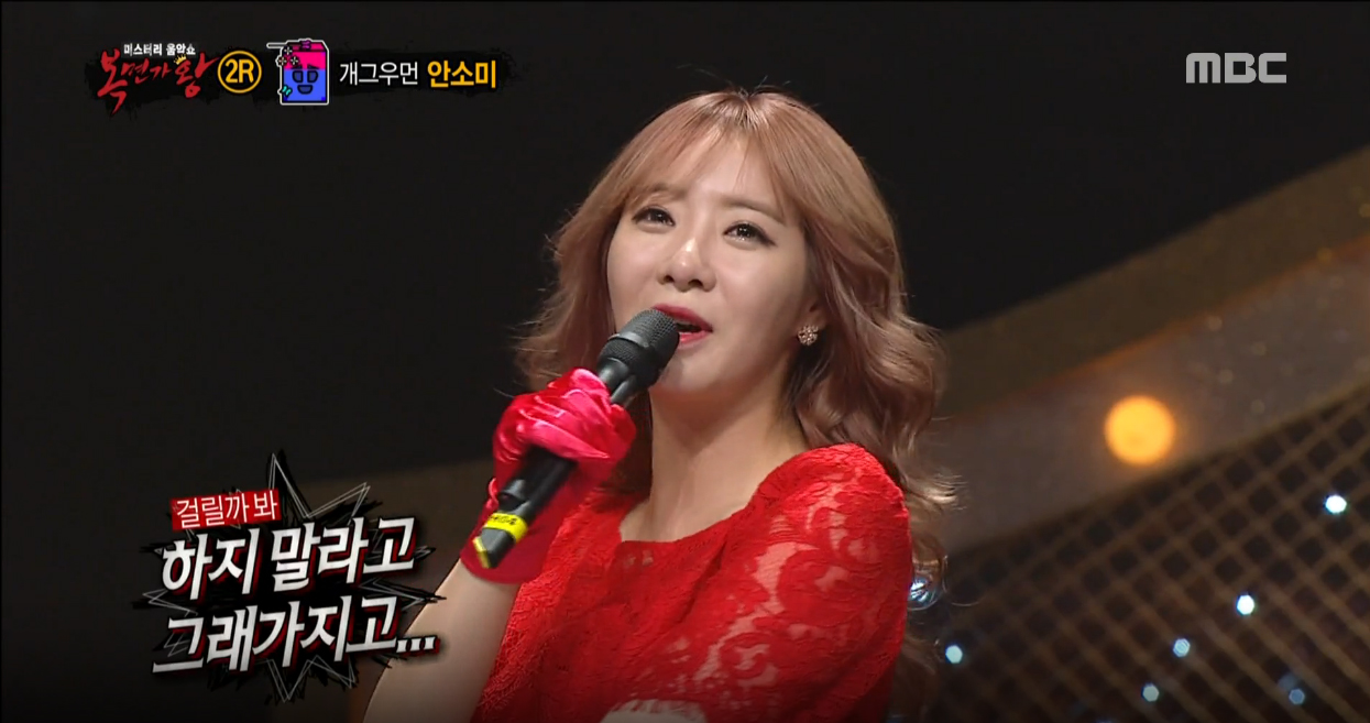 14일 방송된 MBC 예능프로그램 <일밤-복면가왕>에서는 '청사초롱'의 정체가 개그우먼 안소미로 밝혀지는 모습이 그려졌다.