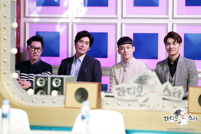 24일(수) 방송되는 MBC 예능프로그램 <라디오스타>에서는 중국 대륙을 휩쓴 대세 한류스타 4인방인 지석진-최성국-첸(EXO)-김은성(지상려합)이 출연하는 ‘오빤 중국스타일’ 특집이 펼쳐진다.