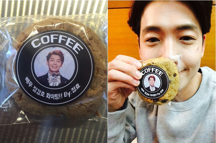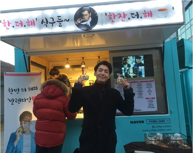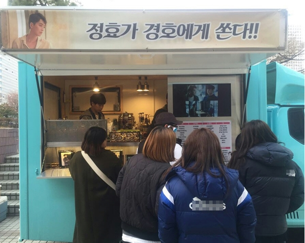 배우 정경호가 커피차 선물을 받고 함박웃음을 지었다.