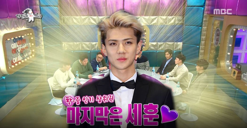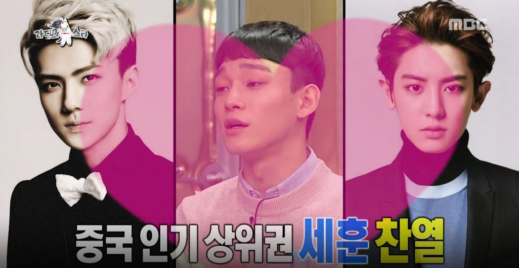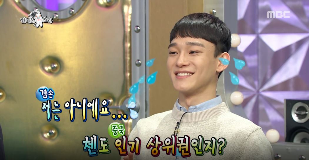 24일 방송된 MBC 예능 프로그램 <황금어장-라디오스타> 467회에서는 토크쇼에 처음 출연한 EXO 첸이 인기 있는 멤버에 대해 말하는 모습이 전파를 탔다.