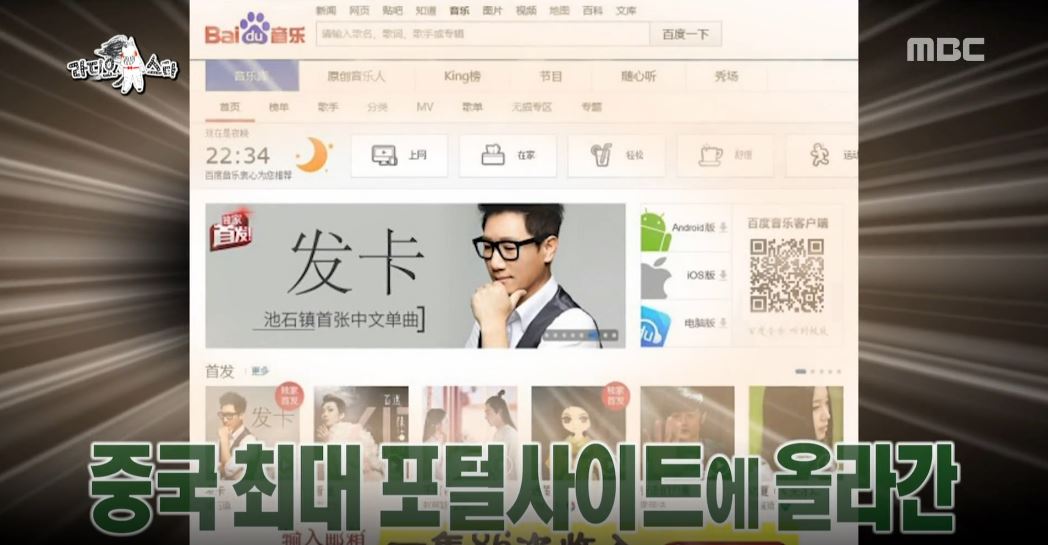 먼저 김국진이 “최근 중국에 음반을 냈나?”라고 물었다. 이에 지석진이 “발매하자마자 중국 내 전체 차트 22위를 차지했다”고 말해 모두를 놀라게 했다.