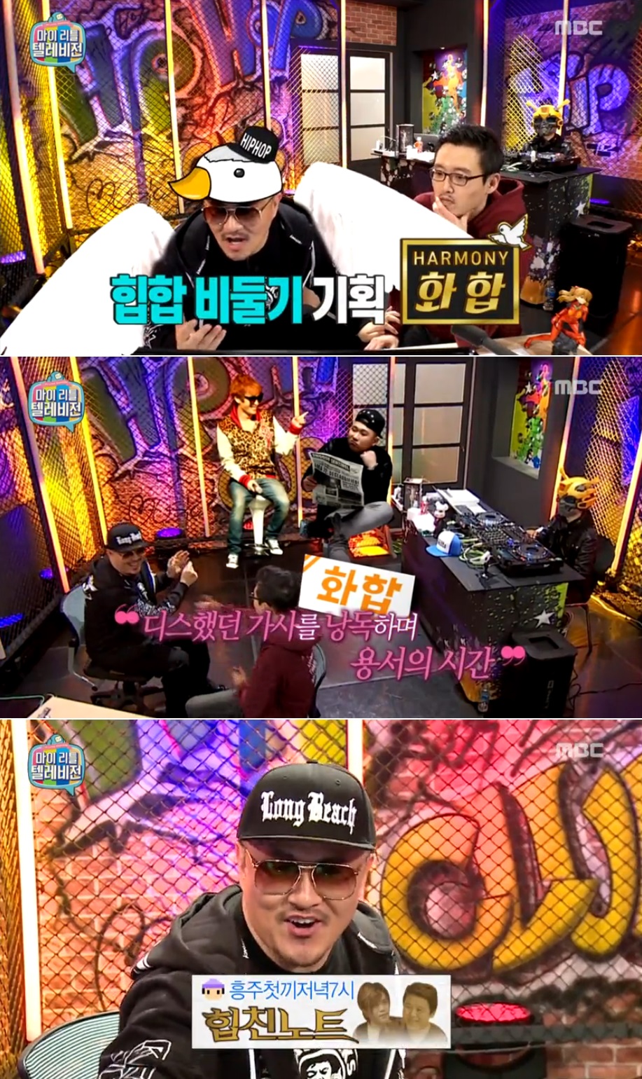 이어 데프콘은 “‘화합’이란 코너도 생각해봤다”며 “예전에 디스전을 하면서 서먹했던 스윙스, 쌈디 등을 불러 서로 디스했던 가사를 낭독하는 거다”라며 프로그램 아이디어를 냈다. 뒤이어 “힙친노트 그런 거다. 내가 MC하겠다”며 힙합인들을 위한 프로그램을 소개했다.