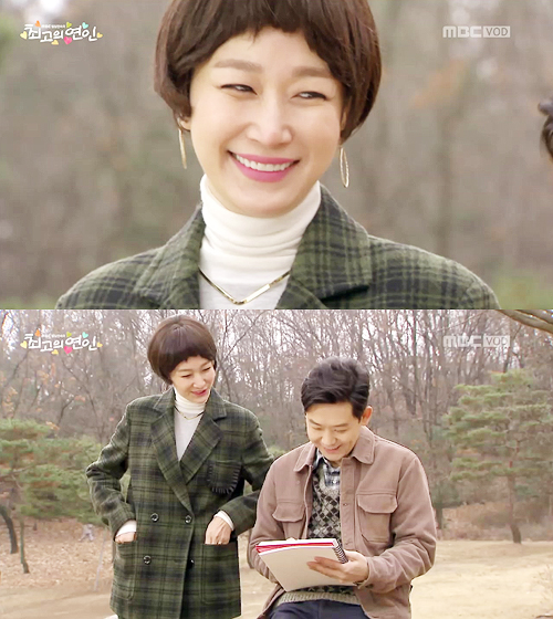 이 장면에서 변정수는 베이직한 디자인의 폴라 니트와 함께 체크 패턴으로 클래식한 느낌을 주는 오버핏의 더블 코트를 착용해 눈길을 끌었다. 여기에 변정수는 골드 컬러의 링에 모래 텍스쳐로 포인트를 준 귀걸이를 함께 착용해 스타일리시한 데일리룩을 완성했다.