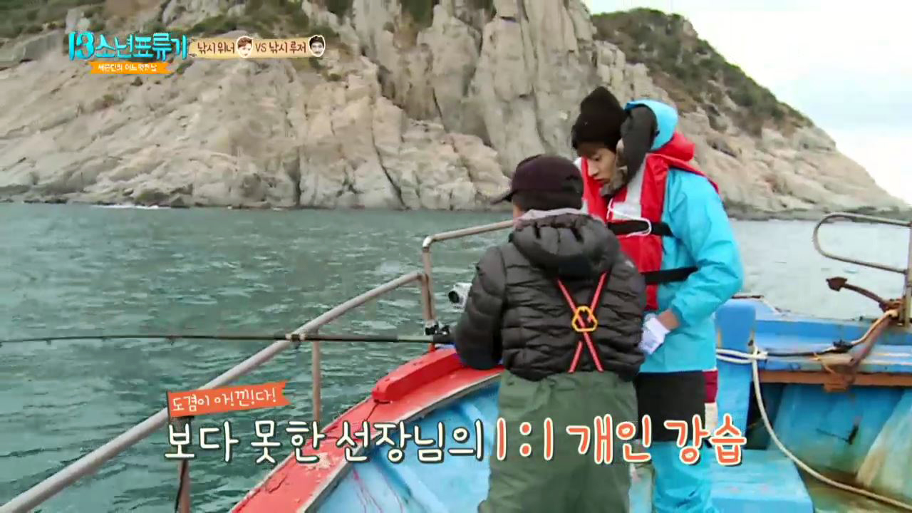 척척 낚는 준에 비해 도겸은 번번이 설레발만 치고, 호시는 멀미가 나서 주저앉고 말았다. 여유 넘치는 낚시 왕자 준에 비해 조바심이 난 도겸을 위해 선장님이 일대일 개인강습에 나서야 했다.