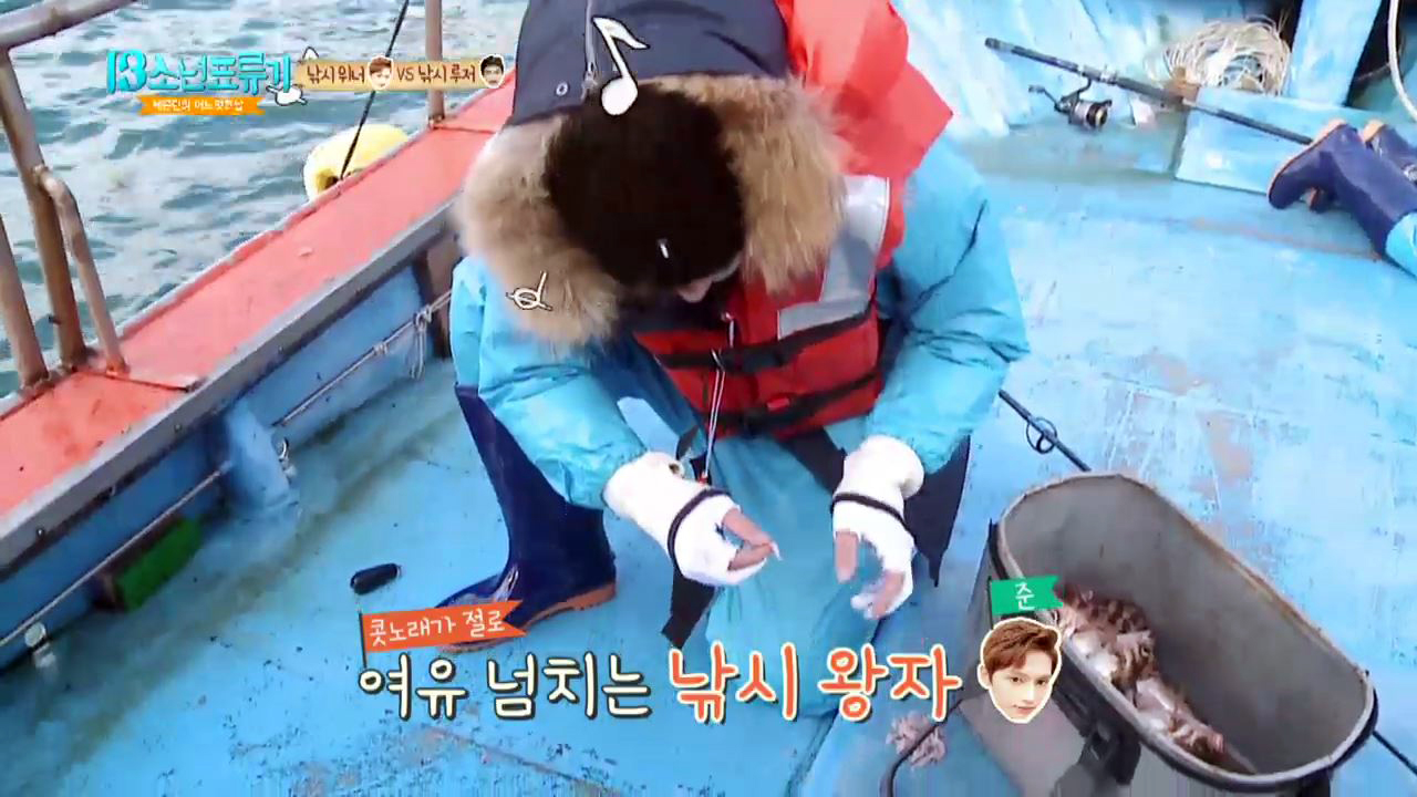 3월 7일 저녁 방송된 MBC뮤직 예능프로그램 <세븐틴의 어느 멋진 날-13소년 표류기>에서 세븐틴 도겸과 준, 호시는 배를 타고 바다로 나가 낚시에 나섰다.
