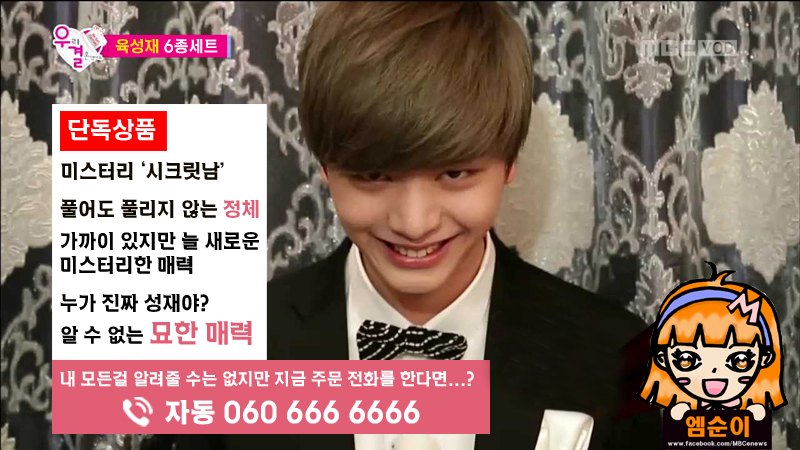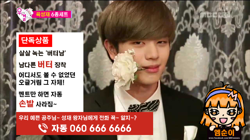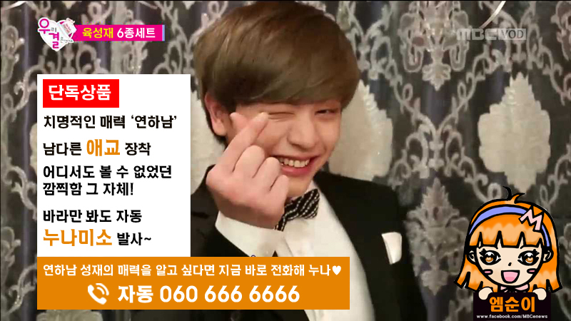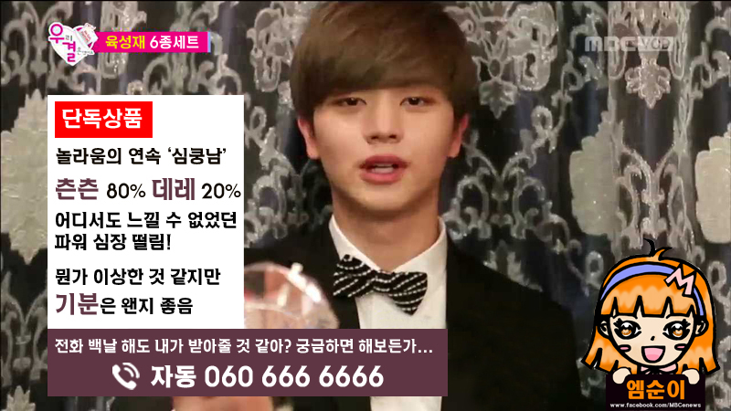 지난주 MBC <우리 결혼했어요> 방송에서 육성재는 조이를 위한 이벤트로 6가지 매력을 발산했다. 반응은 폭발적. 방송 이후 육성재의 매력에 푹 빠져든 시청자들의 패러디가 이어지고 있는 가운데 주문 전화를 부르는 홈쇼핑 버전 육성재 6종 세트를 소개한다.