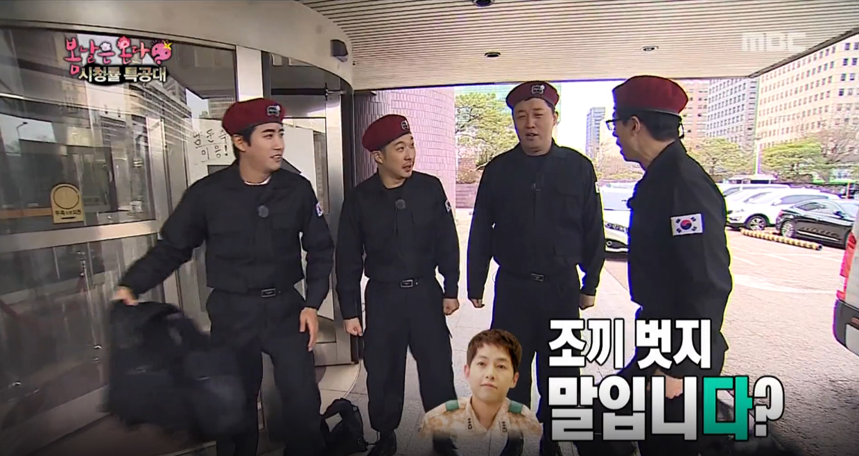 이날, 멤버들은 시민들의 봄 옷차림을 단속하기 위해 출동 준비에 나섰다. 멤버들은 '태양의 후예'의 송중기를 언급하며 "지금 우리랑 좀 비슷하지 않냐"는 망언으로 현장의 웃음을 자아냈다.