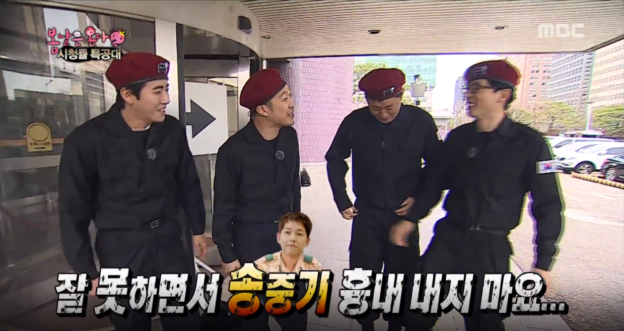 이마저도 "조끼 벗지 말입니다"라며 다나까 어투로 송중기를 따라하는 유재석에 하하는 "잘 못하면서 송중기 흉내내지 말아라"고 돌직구를 날려 폭소를 자아냈다.