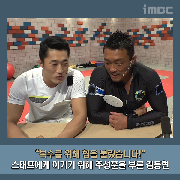 2016년 3월 19일(토) 방송된 <마이 리틀 텔레비전>에는 격투기 선수 김동현과 추성훈이 함께 출연하며 화제를 모았다. 지난 스태프와의 대결에서 참패를 맛본 김동현이 설욕전을 위해 친한 형님(?) 추성훈을 모셔온 것. 추성훈과 김동현은 자신만만한 모습을 보이며 "가장 강한 스태프 3명을 데려와 달라" 말했고, 그 결과... 복수극이 아닌 웃음극을 탄생시켰다는데... 이거 '격투기'가 아니라 거의 '웃음 격투기' 아닙니까? 눈물 없이 볼 수 없는 김동현의 설욕전을 카드 뉴스로 만나봅니다!