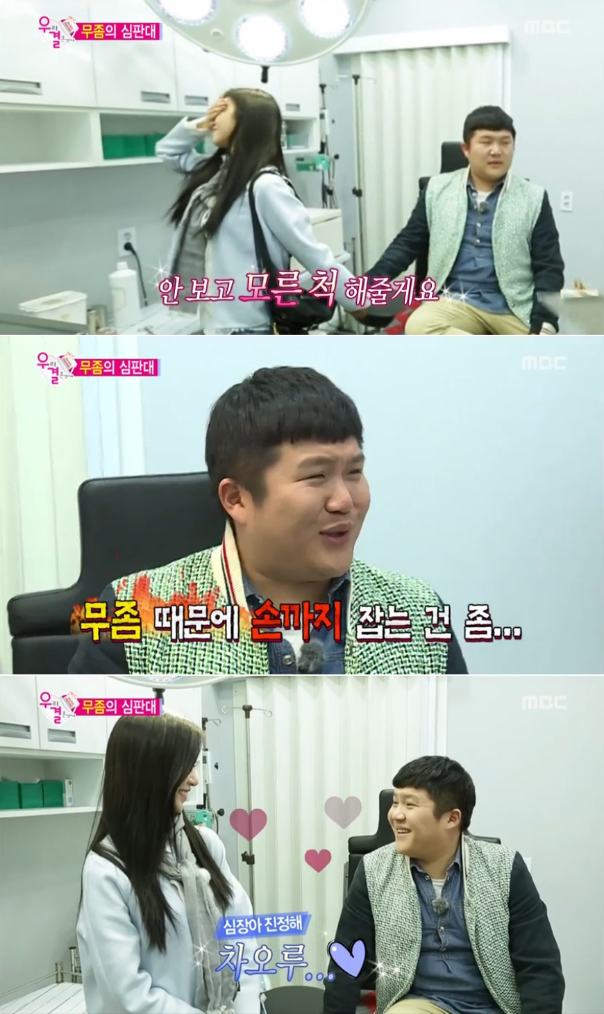 당황해하는 조세호를 위해 차오루는 “안 보겠다”며 등을 돌렸고, “손 잡아주겠다”며 조세호의 손을 잡으며 내조에 나섰다. 하지만 조세호는 다정한 차오루의 배려에도 민망해하며 “무좀 때문에 손 잡는 것도 좀 그렇다”며 너스레를 떨어 웃음을 자아냈다.