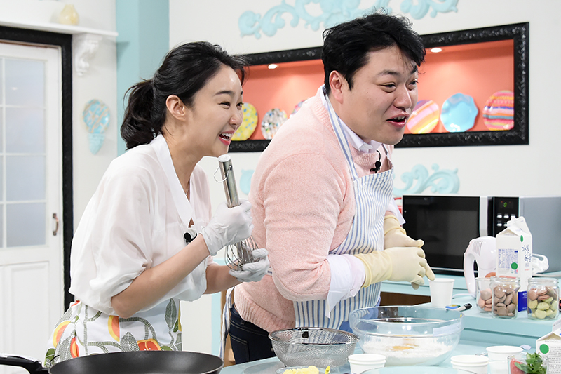 유민주는 또 하나의 정통 프랑스 디저트인 ‘크레페 케이크’ 레시피를 소개했다. 여러 장의 크레페를 구워 만들어야 하는 레시피 특성상 지난 방송 당시 환상의 호흡을 자랑했던 파트너 권도우FD와 함께 베이킹을 진행했다.
