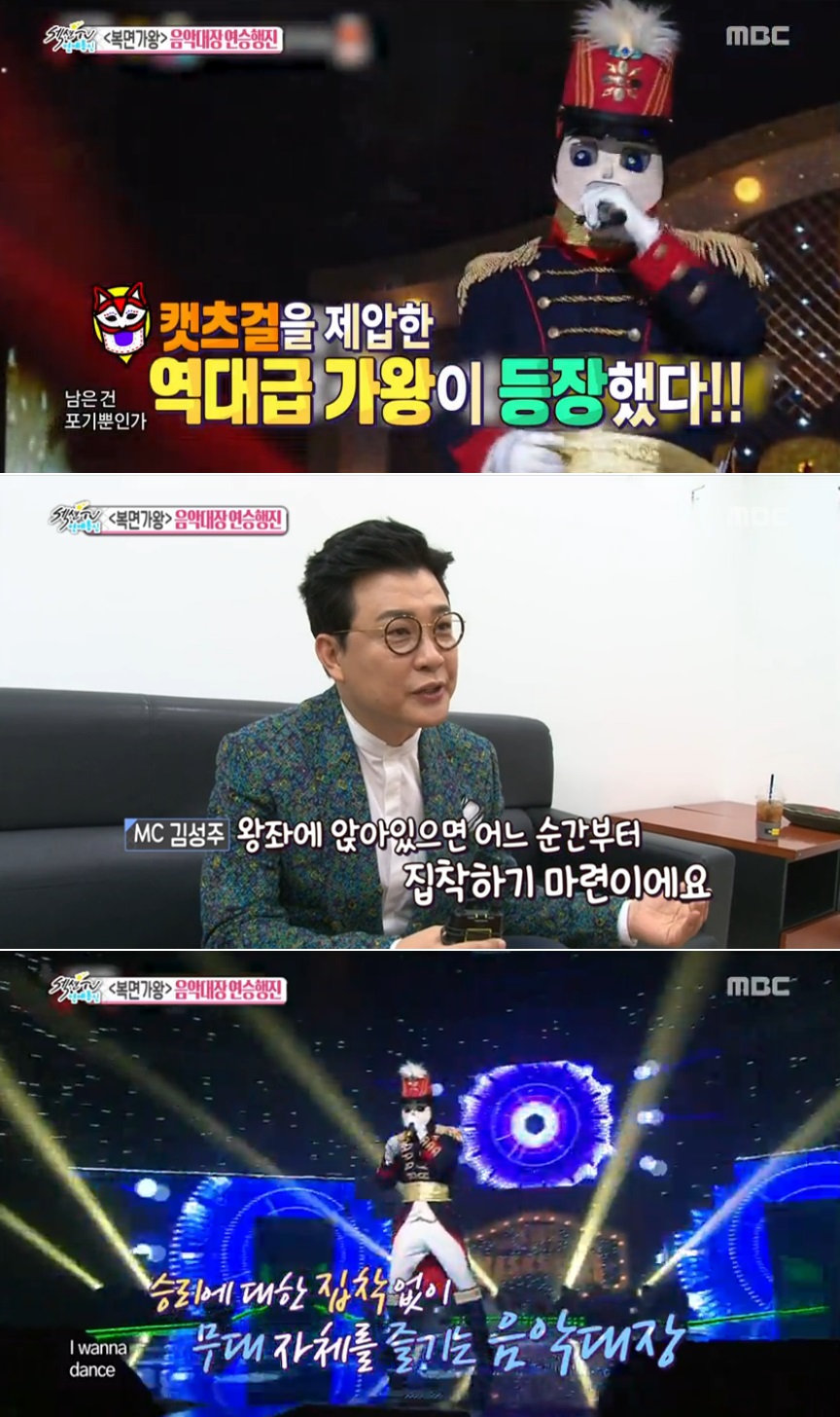 <복면가왕>의 MC 김성주는 “왕좌에 앉아 있으면 어느 순간부터 집착하기 마련이다. 그런데 ‘음악대장’은 그런 집착이 없다. 오히려 많은 걸 내려놓고 하기 때문에 사랑을 받는 거 같다”고 칭찬했다.