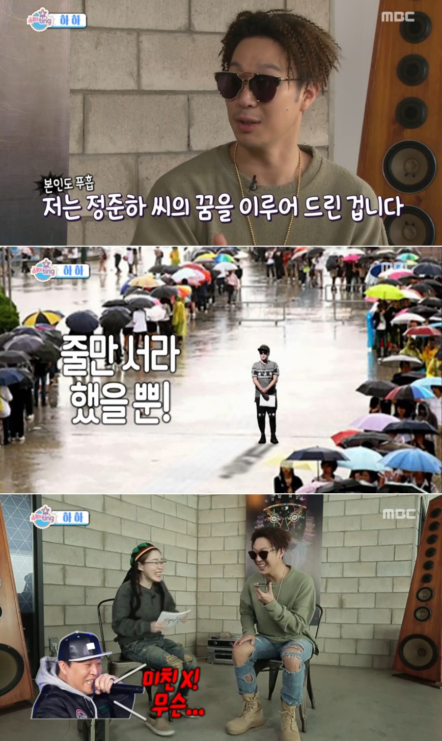 하하는 “정준하 디스라는 오해를 풀어주겠다”며 “저는 정준하 씨의 꿈을 이뤄준 거다”라고 설명하며 웃음을 터트렸다.