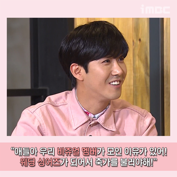 2016년 3월 26일(토) 방송된 <무한도전> 웨딩 싱어즈 특집! 세상에서 단 하나뿐인 축가를 불러주기 위해 무한도전 멤버들이 뭉쳤다! 멤버들 각자 축가를 함께할 가수들의 섭외하는데... 아이돌 광희의 섭외력에 모두 감탄을 했다는 후문. '고마워요 황광희'라는 말이 절로 나올 정도로 비주얼 멤버들만 모아 '웨딩 싱어즈'를 계획하고, 그 멤버들을 들어보니 최고 아이돌 비스트의 리더 윤두준, 엠블랙 출신 보컬이자 배우 이준, 꽃미남 밴드 씨앤블루 정용화 입이 떡 벌어지고 눈이 확 환해지는 이 라인업! 캡처만 봐도 행복해지는 그들은 웃음까지 완벽하게 챙겼다는 후문. 모이기만 해도 명장면인 그 화면을 카드뉴스로 만나봅니다!