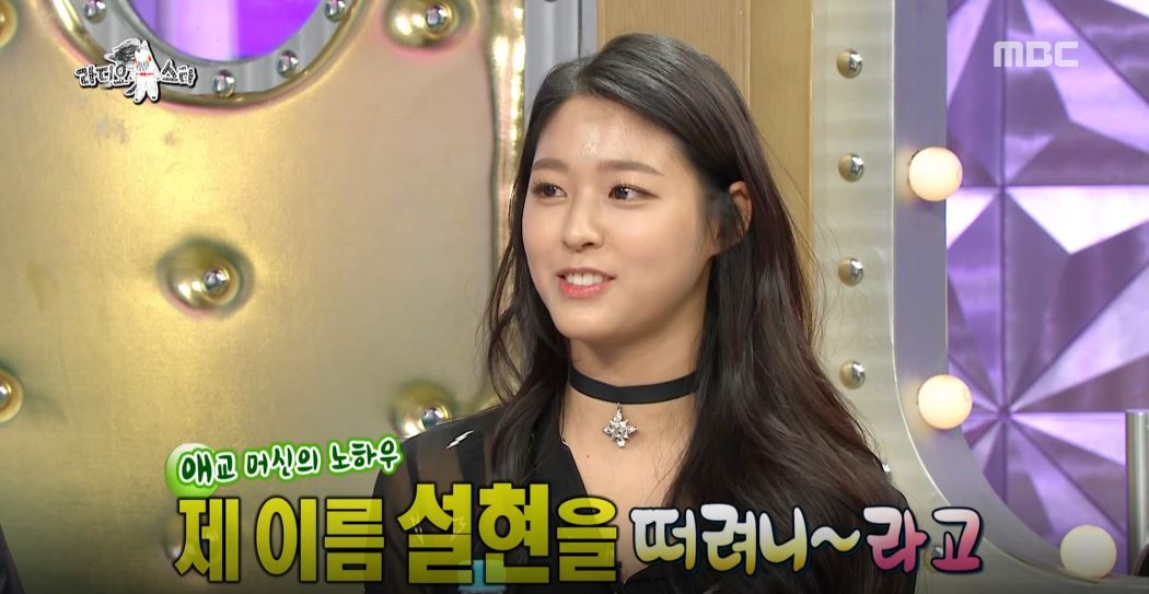 이어 설현은 “내 이름 설현을 ‘떠려니~’라고 발음한다”고 말한 후, “떠려니 귀요옹?”이라며 기습 애교를 선보였다. 이를 본 김구라는 “치명적인 애교다!”라며 극찬했다.