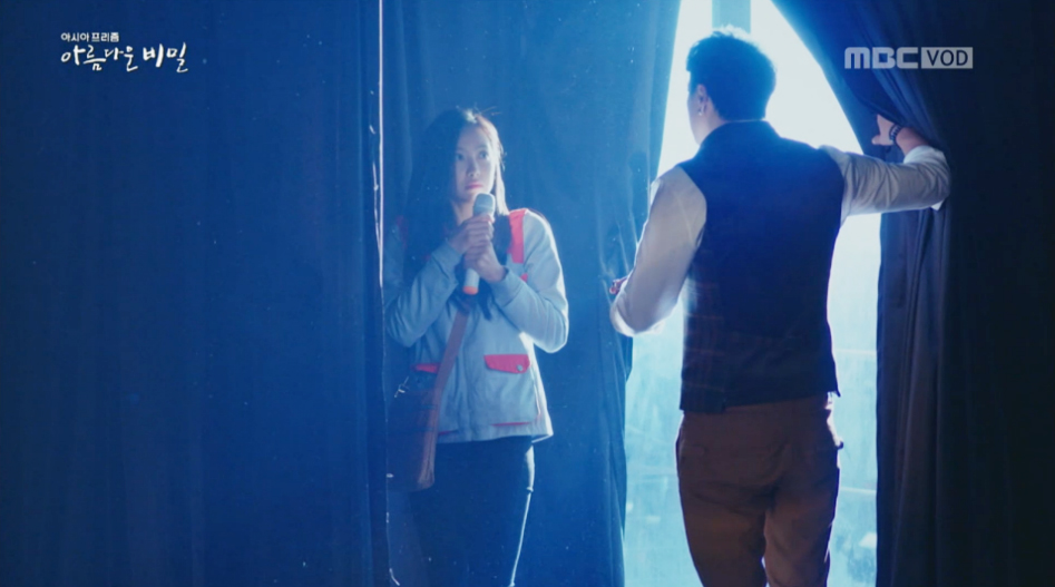 오디션이 시작됐고, 심사위원석에 앉아있던 관이는 조명을 낮추고 노래를 부르는 메이옌을 유심히 살핀다. 하지만 아름다운 목소리와 입술이 어쩐지 맞지 않다고 느낀 관이는 이를 수상쩍게 여기고, 갑작스레 무대 앞으로 나가 무대 뒤 커튼을 들춘다. 그곳에는 메이리가 어둠 속에서 노래를 부르고 있었던 것.