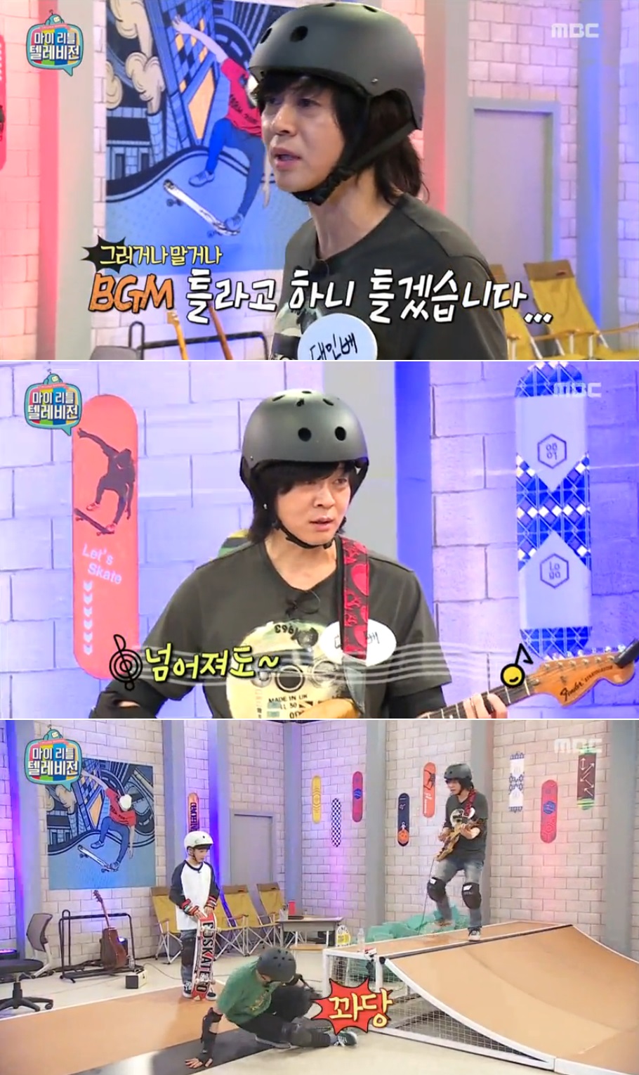 이때, 모르모트 PD는 윤도현을 향해 스케이트보드를 발사하며 넘어졌고, 날아든 스케이트보드에 당황했던 윤도현은 “괜찮다. 다행히 기타에 맞지 않았다”며 넘어진 모르모트 PD보다 기타를 걱정하는 모습을 보여 웃음을 자아냈다.