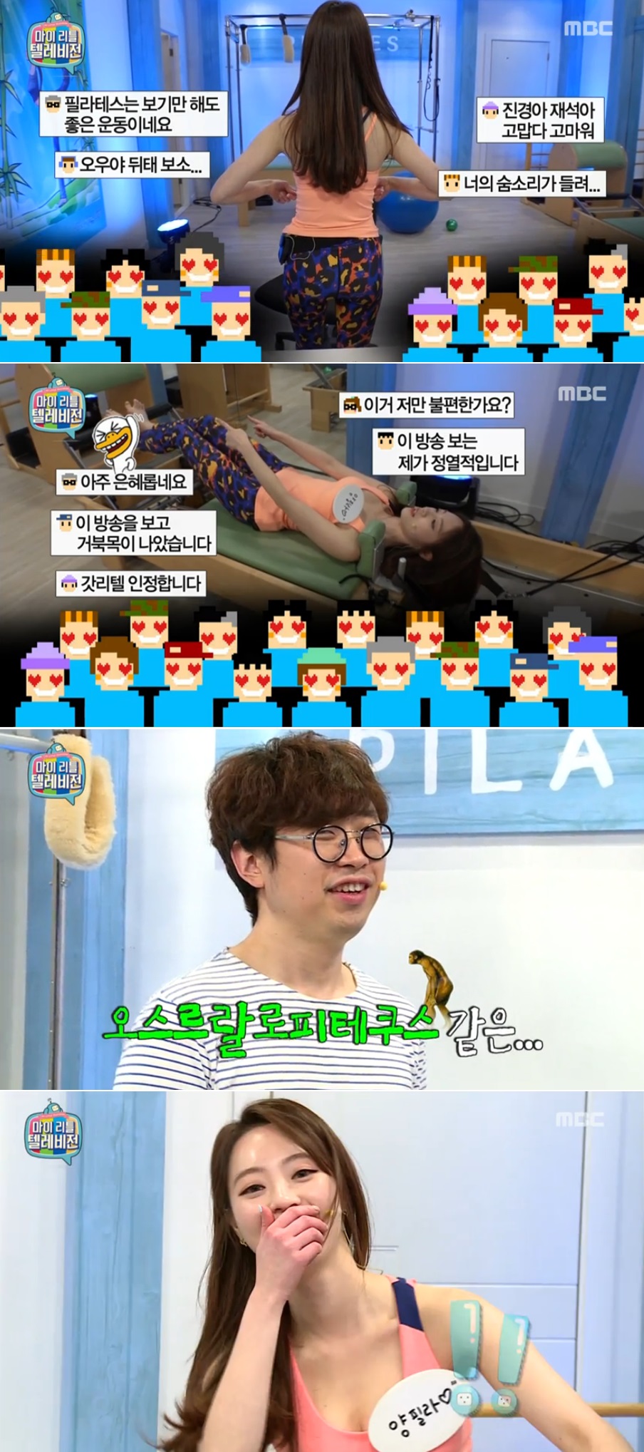30일에 방송된 MBC 예능 프로그램 <마이 리틀 텔레비전>에서는 양정원이 필라테스를 주제로 방송을 진행하는 모습이 그려졌다.