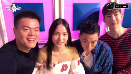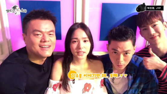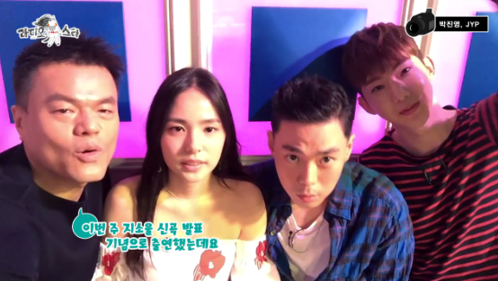 시청자들에게 인사를 전한 박진영에 이어 '누가 재밌을지 몰라서 내가 나왔다!' 특집에 출연한 JYP 사단 민효린, 지소울(G.Soul), 조권이 차례대로 인사를 전했다.
