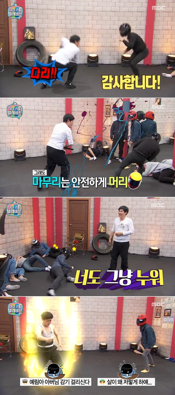 이어 이경규는 화려한 액션을 선보이는 상대에게 다가가며 쌍절곤을 휘둘렀고, 연이어 “다리!”를 외치며 상대방의 다리만을 공격했다. 하지만 결국 안전하게 헬맷을 쓴 머리를 가격한 것으로 상대를 제압했고, 멀뚱하게 서 있는 또 다른 괴한의 머리를 가볍게 치는 것만으로 상대를 쓰러뜨려 어색한 상황극에 재미를 더했다.