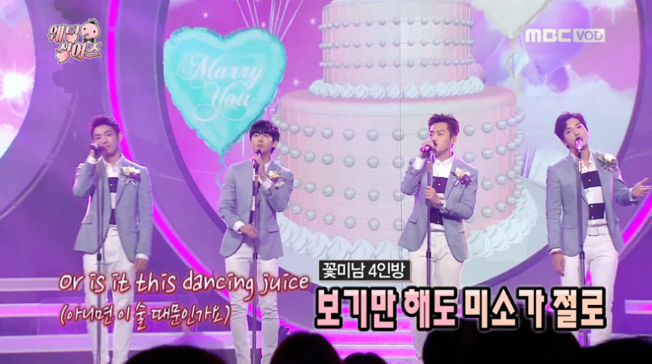 그에 앞서 ‘웨딩싱어즈 첫 번째 이야기’ 편에서는 무도 멤버들과 함께 ‘웨딩싱어즈’ 공연을 펼칠 멤버가 공개돼 화제를 모았다. 그중에서도 황광희와 함께 팀을 이루게 된 스타로 정용화, 이준, 윤두준이 출연했다. 세 훈남 스타의 등장으로 시청자들은 여심을 저격당하며 이들의 무대에 관심을 모았다.