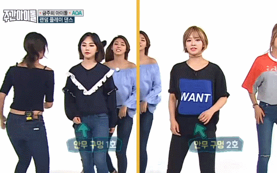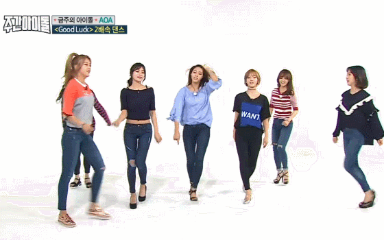 18일(수) MBC 에브리원 <주간 아이돌>에 천사들이 왔다! 신곡 'Good Luck'으로 1년 만에 돌아온 AOA(지민, 초아, 유나, 유경, 혜정, 민아, 설현, 찬미). 7명 전원이 완전체로 예능에 출연해 더욱 화제를 모았던 <주간 아이돌> 그러나 진짜 화제는 따로 있었으니.... 매번 열심히 성공하고 가는 진부한 모습은 NO! 사람답고 인간적인 진정한 '랜덤 플레이 댄스'를 보여주고 간 그녀들. 그리고 모두가 당연히 실패할 거라 생각한 신곡 'Good Luck' 2배속 댄스를 성공시키는 대반전까지! 그 현장을 움짤로 만나보자.