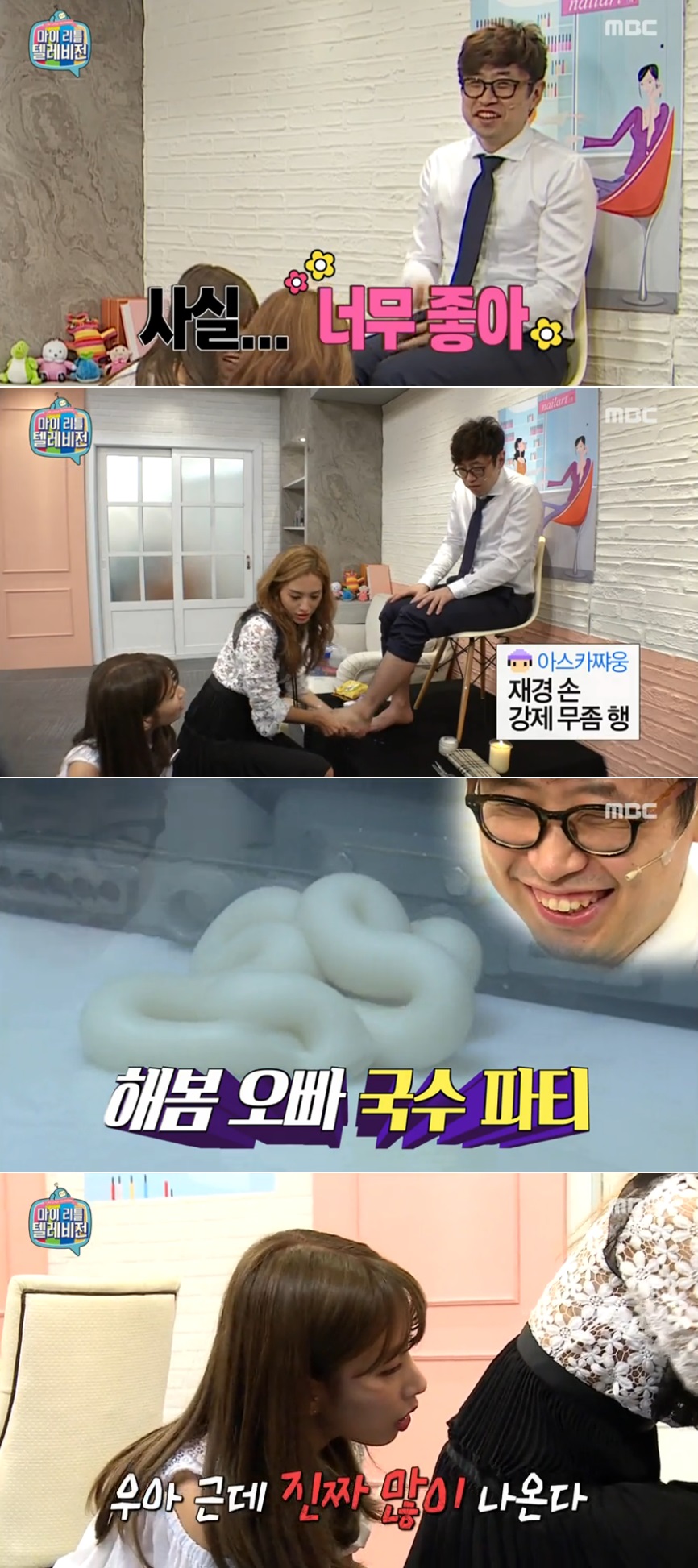 레인보우의 재경과 지숙이 모르모트 PD의 발 관리에 나섰다