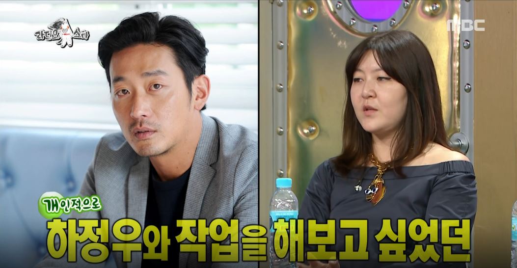 25일 방송된 MBC 예능 프로그램 <황금어장-라디오스타> 479회에서는 패션계 ‘센 언니’ 한혜연이 출연해 하정우와 오해를 풀고 싶다고 전했다.