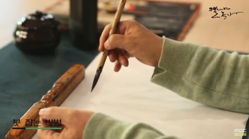 Part 2. 붓 잡는 위치 – 붓을 당겨 잡느냐 끝부분을 잡느냐에 따라 다양한 글씨를 만들 수 있다.