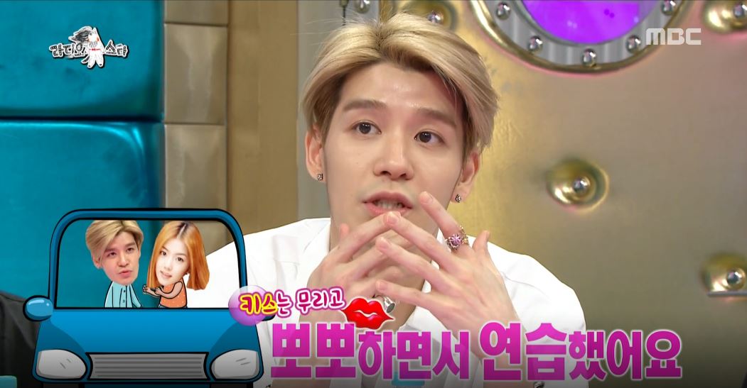 먼저 김구라가 “영화 촬영 때, 투야의 김지혜와 키스신 리허설을 둘이서 몰래 했다던데?”라고 물었다. 이에 강성훈이 “팬들이 많이 모여서 통제할 수가 없었다. 그래서 감독님이 차 안에서 연습하라고 시켰다”고 말했다. 그러자 윤종신이 “속 깊은 감독님이다”라고 농담해 웃음을 안겼다.