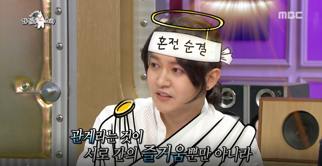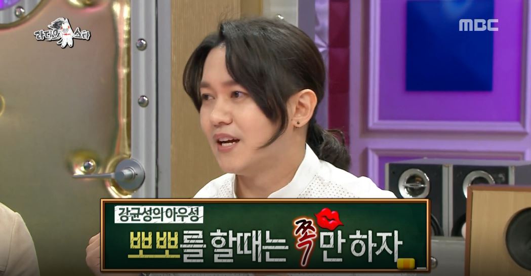 이때 김구라가 스킨십 허용 범위에 관해 물었다. 그러자 강균성은 “뽀뽀를 할 때는 ‘쪽’만 하고, 포옹은 아랫배를 붙이지 않아야 한다”라고 말해 시선을 모았다.