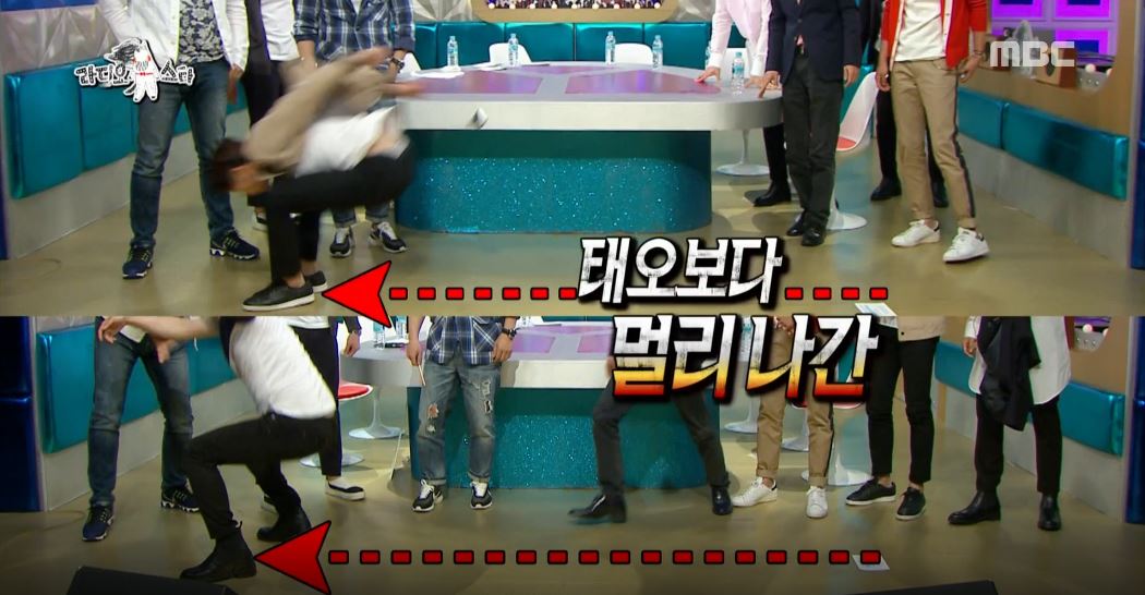 그러자 MC들이 멀리뛰기 시범을 요청했는데, 서강준이 “강태오도 잘한다”라고 부추겼다. 결국, 서강준-강태오-전우성 순으로 멀리뛰기 대결이 펼쳐졌다.