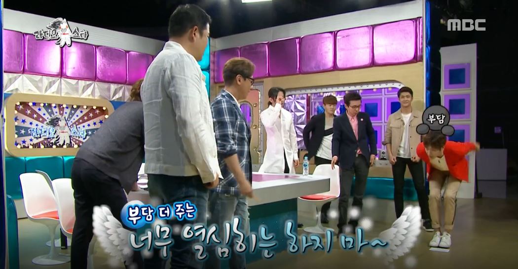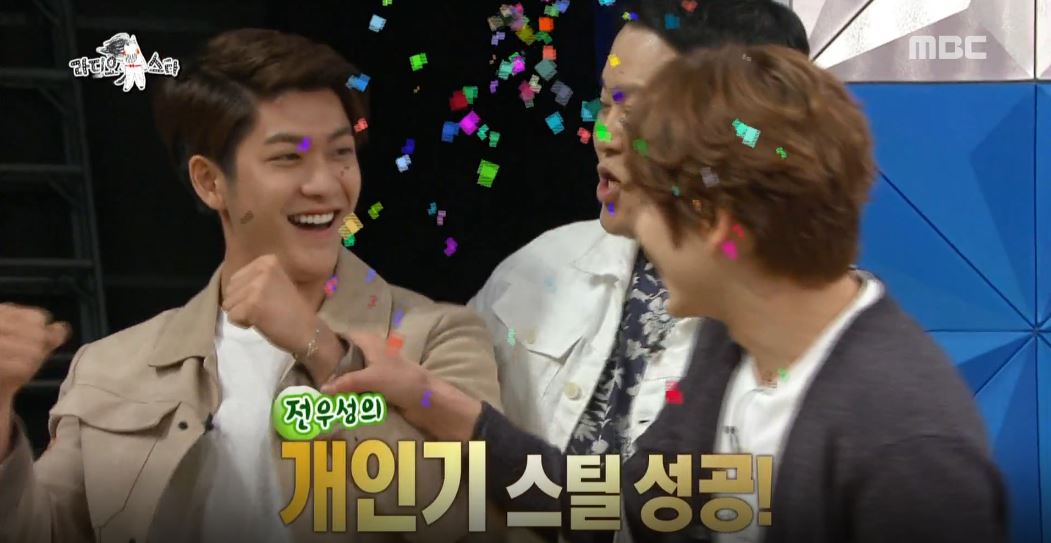 8일 방송된 MBC 예능 프로그램 <황금어장-라디오스타> 481회에서는 안방극장을 사로잡은 기대주 강태오가 출연해, 축가 섭외 1순위인 노을의 전우성과 멀리뛰기 시합을 벌였다.