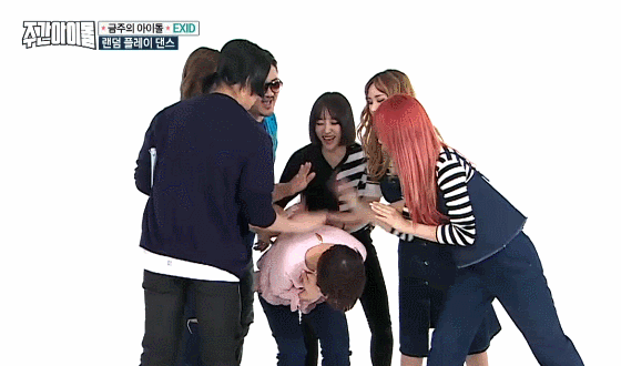 8일(수) MBC 에브리원 <주간아이돌>에는 신곡 L.I.E로 돌아온 걸 그룹 EXID()가 출연했다. 특히 <주간아이돌> MC로 활약하고 있는 하니가 속한 그룹이기 때문에 게임의 강도와 벌칙이 더욱 강해졌다는데...? 그중 랜덤 플레이 댄스를 통해 가장 싫어하는 벌칙을 당하게 된 EXID 멤버들. 벌칙을 피하기 위해 열정을 가지고 춤을 췄지만 결국 피해 갈 수 없었던 벌칙의 늪. 그녀들의 춤출 때와 벌칙 받을 때의 온도차를 움짤로 만나봅니다!