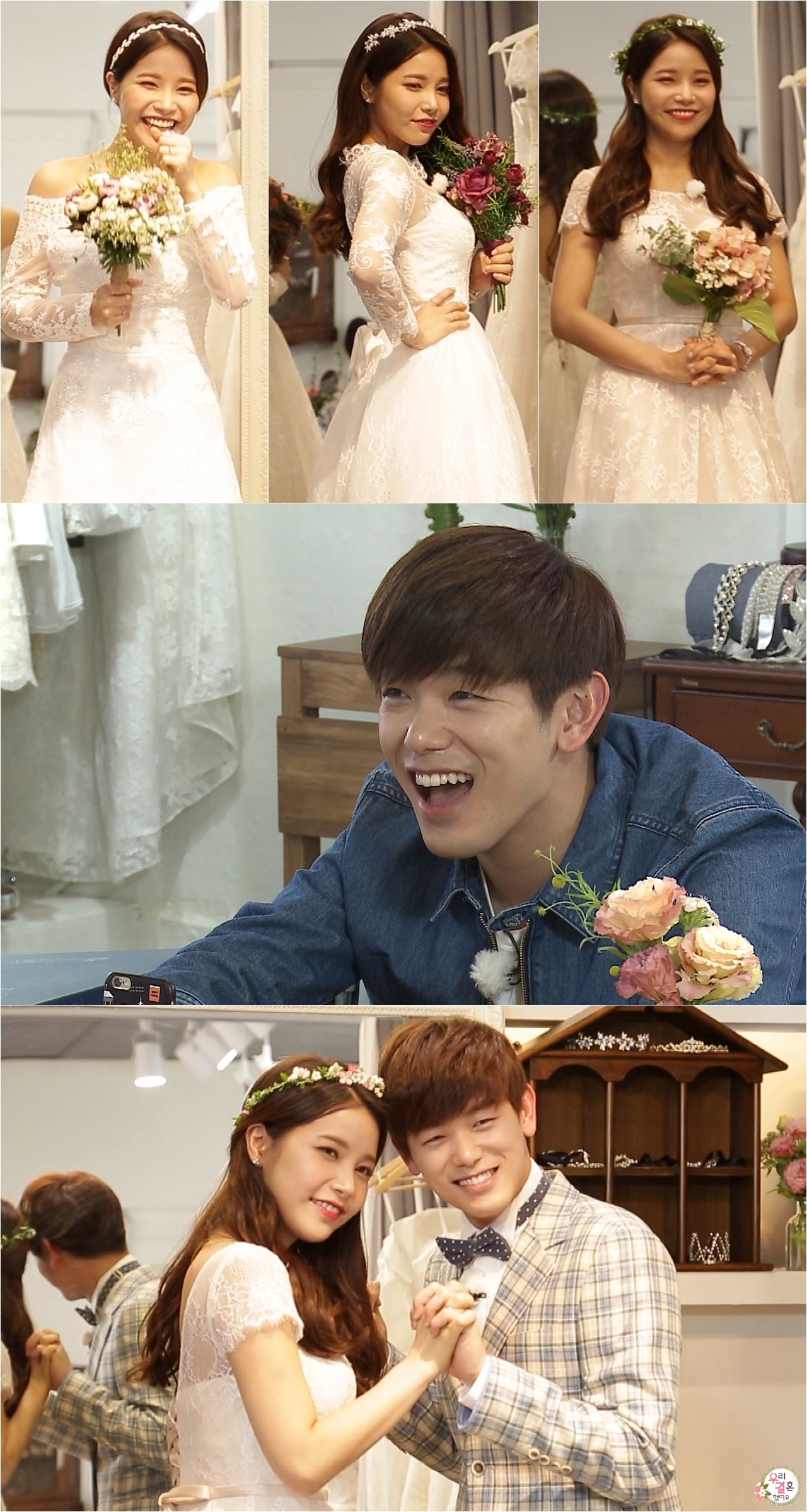 제작진에 따르면 ‘똥이 커플’ 에릭남-솔라는 둘 만의 특별한 ‘버스킹 결혼식’을 열 예정. 이에 앞서 솔라는 웨딩드레스를 입어보며 남자들의 로망인 ‘순백의 여신’ 미모를 제대로 드러냈다는 후문이다.