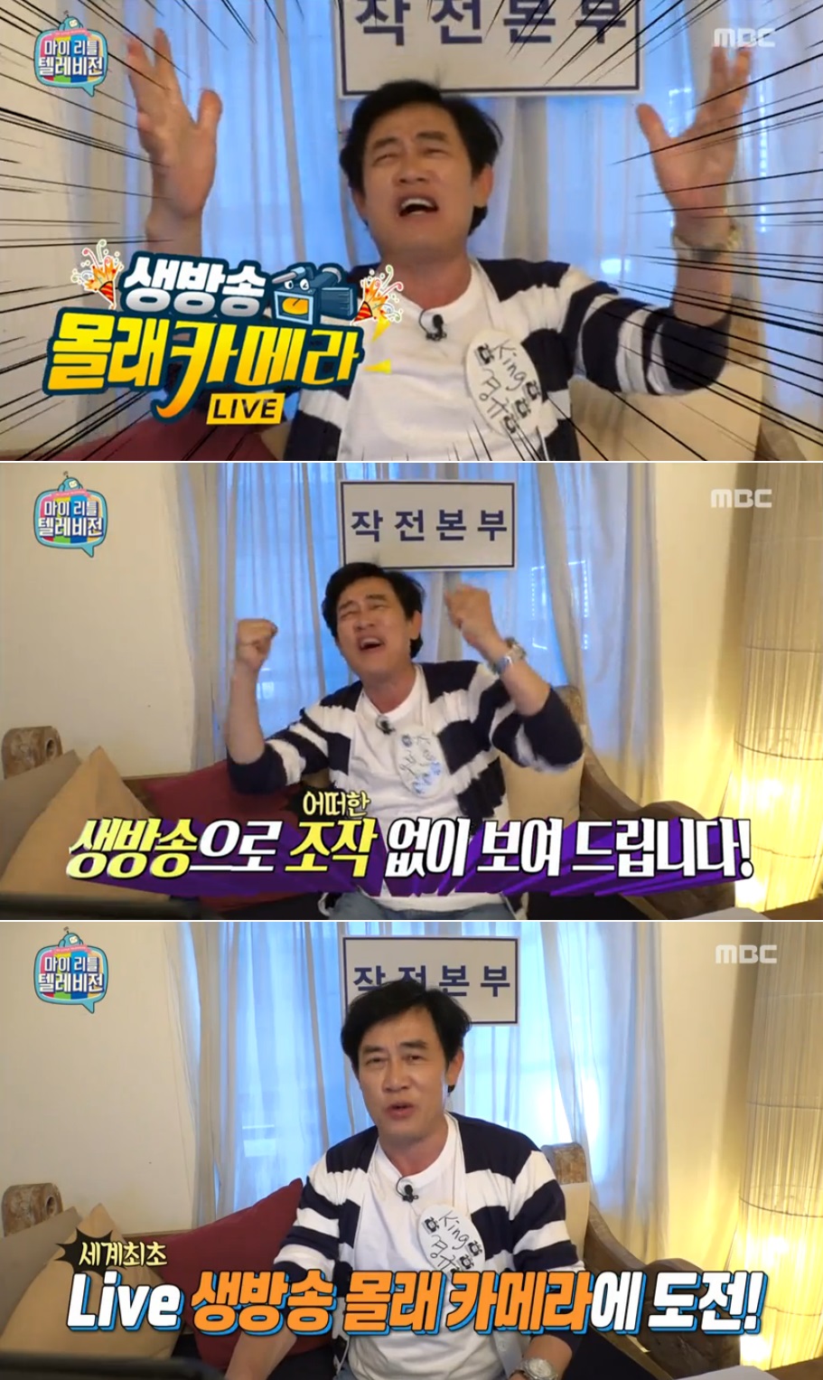 이경규는 사실은 ‘작전본부’라며 해당 방의 실체를 밝히며 “세계 최초로 도전하는 생방송 몰래카메라!”라고 외쳤다. 이어 “나의 필살기다. 그토록하고 싶어 했던 몰래카메라를 생방송으로 하게 됐다”며 “오늘 만약 몰래 카메라가 들통이 난다면 책임지고 마리텔에서 하차하겠다”며 강한 자신감을 드러내 시청자들의 기대감을 높였다.