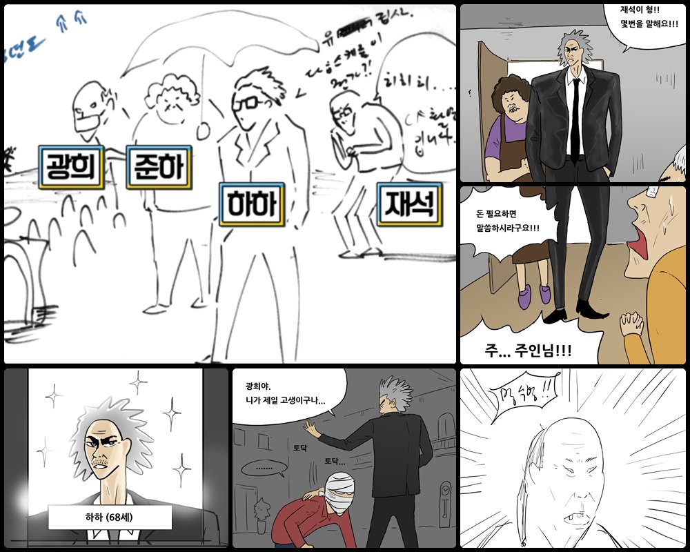 그 외에도 남다른 상상력으로 모두를 충격에 빠뜨린 양세형&이말년, 정준하&가스파드의 독특한 작품은 물론 유재석을 순정만화 주인공으로 변신 시킨 무적핑크, 직접 캐릭터를 그리며 솜씨를 뽐낸 광희와 스승 윤태호까지 6인 6색의 풍부한 이야기가 출격을 앞두고 있다고. 과연 6주 동안 이 이야기들이 서로 어떻게 연결되어 즐거움을 줄 것인지 시청자들의 궁금증이 더욱 커지고 있다.