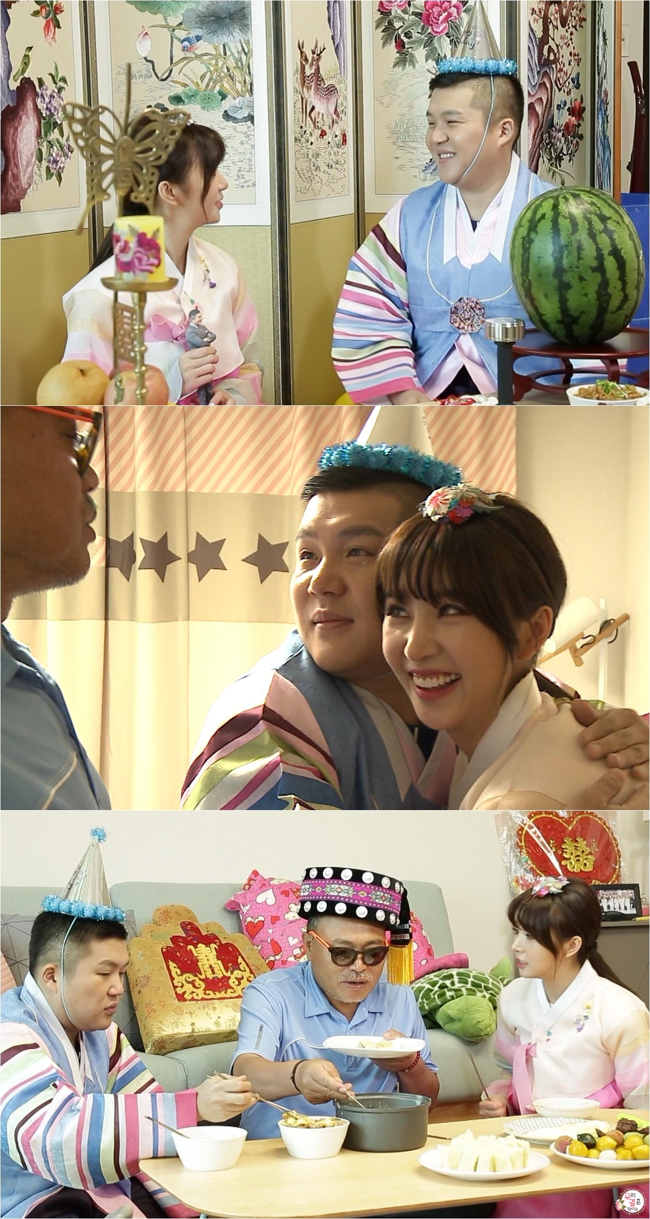 그런 가운데, ‘차오차오 커플’의 파티 사진이 공개돼 시선을 모은다. 한복을 차려 입은 두 사람은 고깔모자까지 쓰고 진정한 파티의 분위기를 즐기며 ‘꽁냥꽁냥’ 신혼 생활의 모습을 제대로 보여주고 있다.