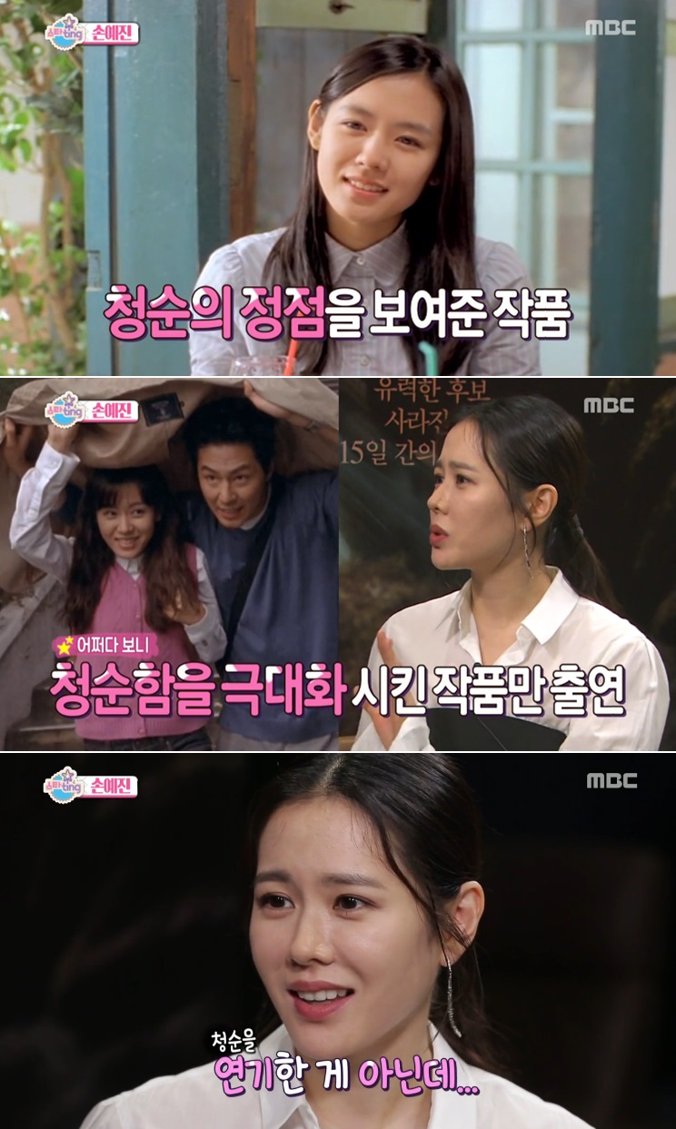 하지만 곧이어 손예진은 “그동안 출연한 작품들에서 그런 모습을 극대화한 것 같다”고 설명하며 “연기한 게 아니다”고 덧붙여 타고난 청순함임을 언급해 폭소케 했다.