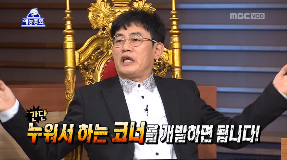 <무한도전-예능총회>에서 이경규는 누워서 방송을 하는 일명 '눕방'을 하겠다는 발언으로 좌중을 어이없게 만들었다. 하지만 그는 <마이 리틀 텔레비전>에 출연해 방송 사상 최초로 '눕방'을 선보였을 뿐 아니라 3회 연속 1위를 차지하는 기염을 토하며 그가 내뱉은 말들이 사실상 우스갯소리나 허황된 말이 아니었음을 입증했다.
