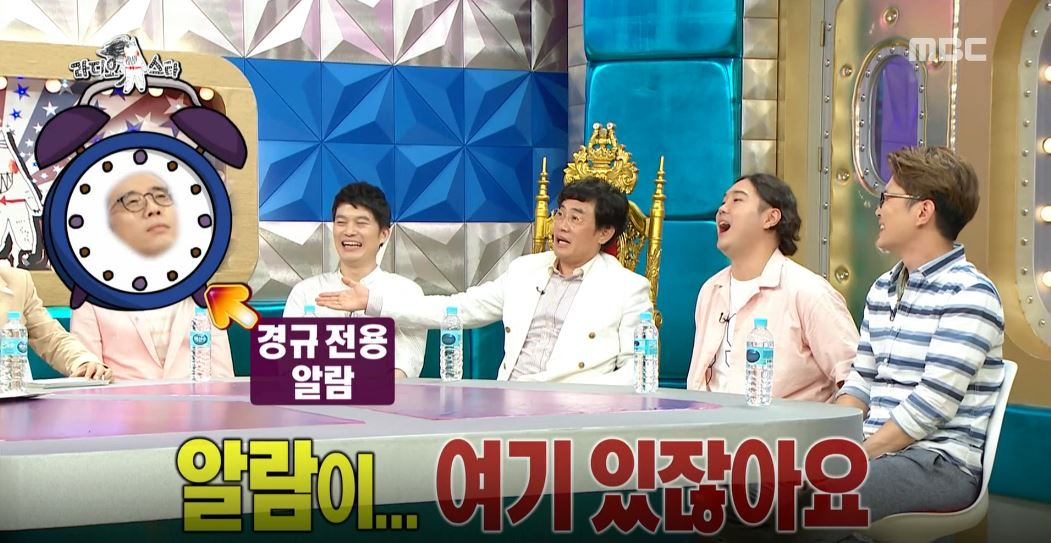 이때 김구라가 박명수와 해외 촬영에서 생긴 일화를 공개했다. 그는 “박명수가 매니저가 술 마셔서 자신을 안 깨웠다며 계속 구시렁거렸다”라고 말했다. 그러자 이경규가 이윤석을 가리키며 “이러니 알람을 데리고 자는 거다”라고 전했다. MC들은 “같이 술도 마셔주는 대단한 알람이다”라며 이경규의 노련함에 감탄했다.