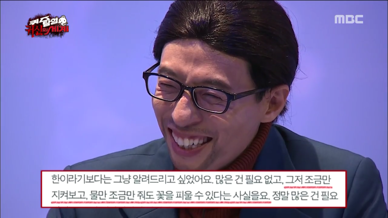 정답을 맞추자 출제자가 인터뷰 당시의 전문을 그대로 읽어주었고 유재석은 민망한 웃음을 지었다 멤버들은 "우리는 언제 꽃이 되냐"고 목소리를 높여 웃음을 자아냈다.