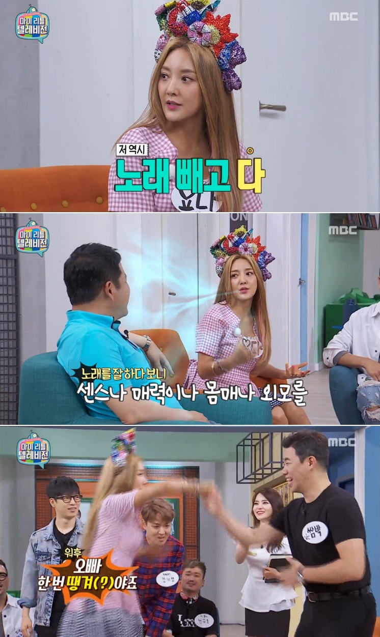 바다는 진지한 목소리로 “노래 실력 때문에 저의 센스나 매력, 몸매나 외모 등을 잘 못보셨다. 여러분들이 놓치셨던 부분들을 보여 드리겠다“고 말했다. 이에 김구라는 어이없다는 듯 “벌써부터 지친다”고 말해 웃음을 자아냈다.
