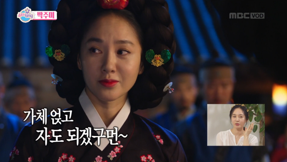 Q. 무더위 속에 사극복장이 덥진 않나?A. 가체가 16년 전 <허준>을 찍을 때보다 훨씬 가벼워졌다. 그래도 시간이 지나니까 힘든 것은 있는 것 같다.